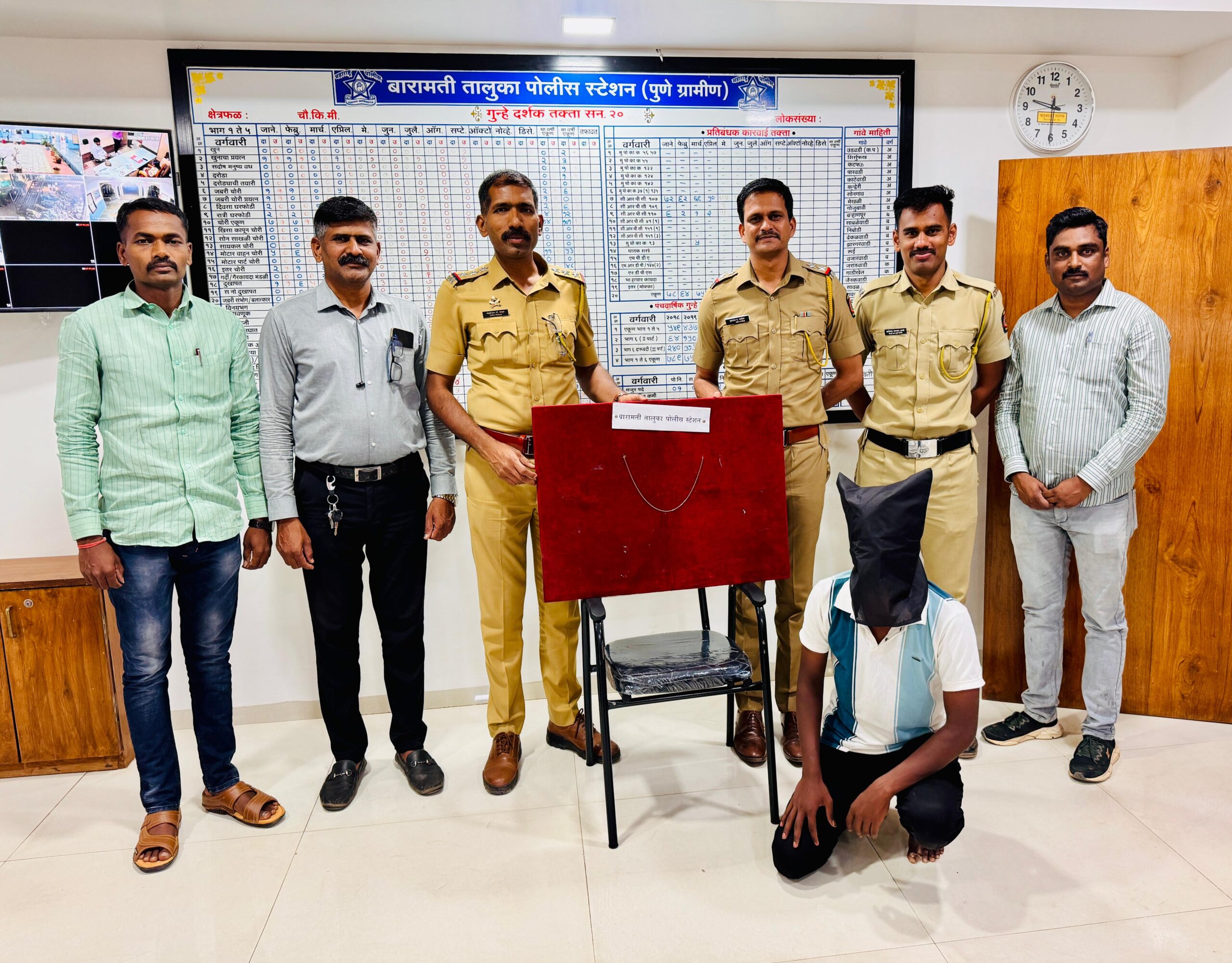 _तांदुळवाडी एलसी लेक परिसरातील घटना; बारामती पोलिसांचा सापळा ठरला भारी_ बारामती दि. १६ -: तांदुळवाडी येथील एलसी कंपनी लेक परिसरात तरुणावर कोयत्याने हल्ला करून लूट करणाऱ्या आरोपीला अखेर बारामती तालुका पोलिसांनी अटक केली असून त्याच्याकडून सोन्याची साखळी जप्त करण्यात आली आहे. दि. १६ जून २०२५ रोजी सायंकाळी सुमारे ६.४५ वाजण्याच्या सुमारास पुलकुंडवार (बदलेले नाव) (वय २२, रा. मार्केटयार्ड, बारामती) हे त्यांच्या मैत्रिणीसोबत तांदुळवाडी विमानतळ रोडलगत असलेल्या एलसी कंपनी लेक परिसरातील मोकळ्या जागेत बसले होते. यावेळी मोटारसायकलवरून आलेल्या दोन अज्ञात इसमांनी तोंडाला रूमाल बांधून त्यांच्यावर हल्ला चढवला. यातील एका आरोपीने देवराज यांना मोबाईल व पैसे देण्याची मागणी केली. त्यांनी विरोध […]